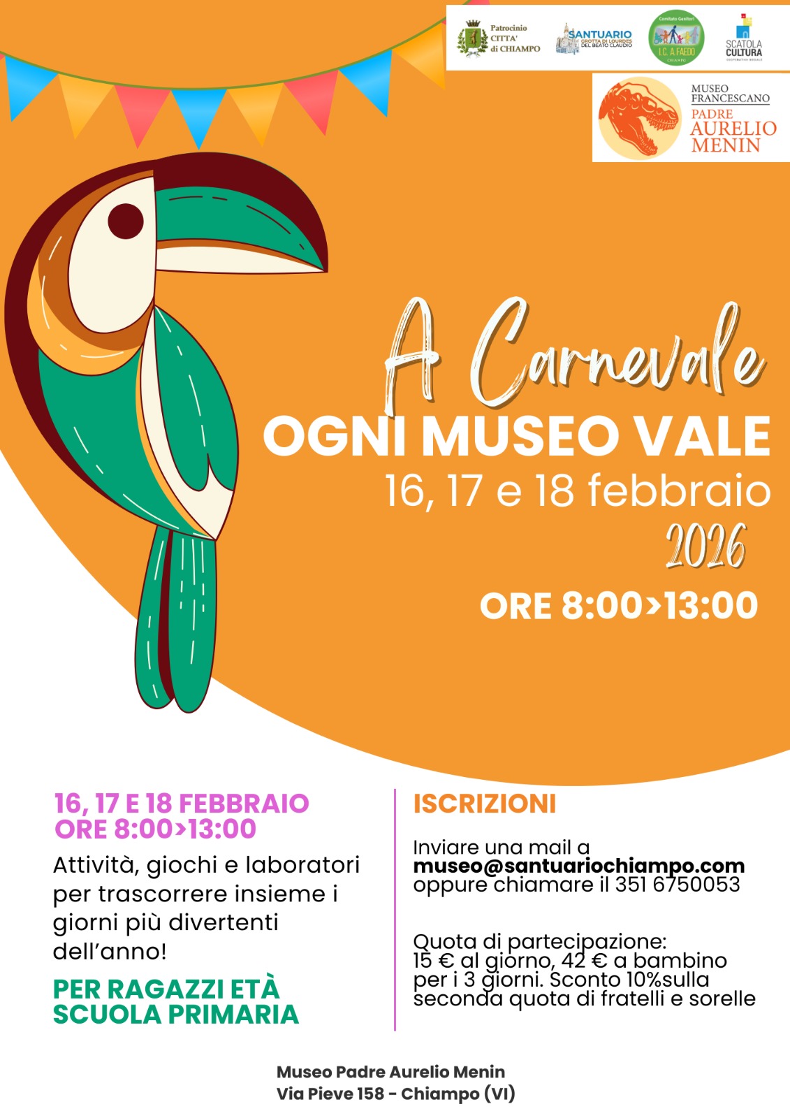 Tre mattine speciali al Museo Francescano Padre Aurelio Menin per vivere il Carnevale tra giochi, attività e laboratori creativi pensati per i bambini della scuola primaria