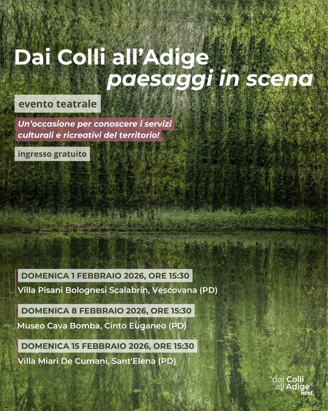 𝑫𝒂𝒊 𝑪𝒐𝒍𝒍𝒊 𝒂𝒍𝒍’𝑨𝒅𝒊𝒈𝒆: 𝒑𝒂𝒆𝒔𝒂𝒈𝒈𝒊 𝒊𝒏 𝒔𝒄𝒆𝒏𝒂, che accompagnano il progetto #DaiColliallAdige NEXT, promosso dal GAL Patavino per valorizzare l’offerta culturale e ricreativa del territorio tra Colli Euganei e Adige.