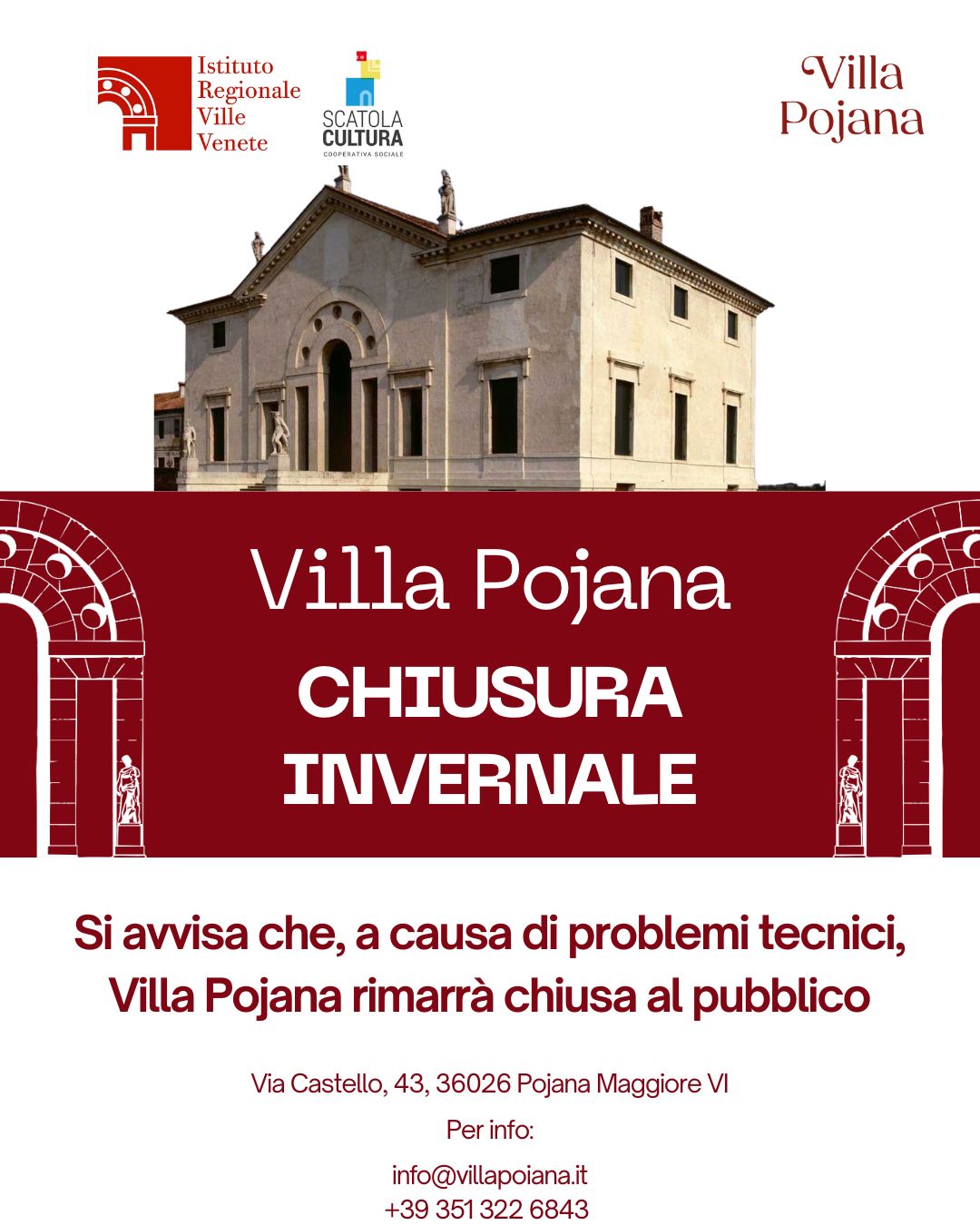 Villa Poiana (Poiana Maggiore, VI) – Chiusura invernale